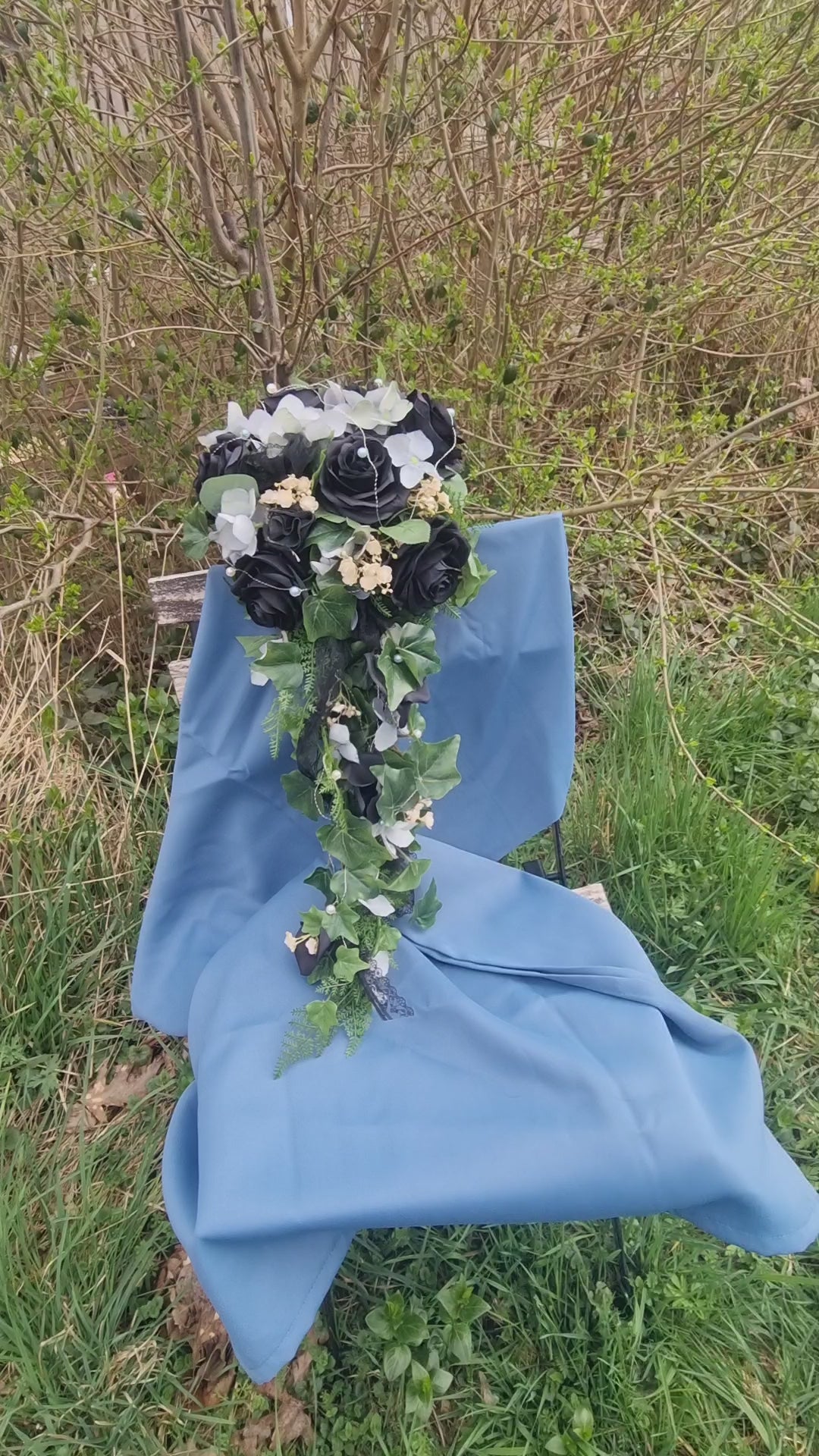 Eleganter Brautstrauss in blau/ Petrol mit schwarz.