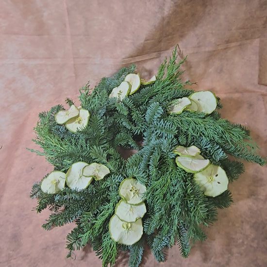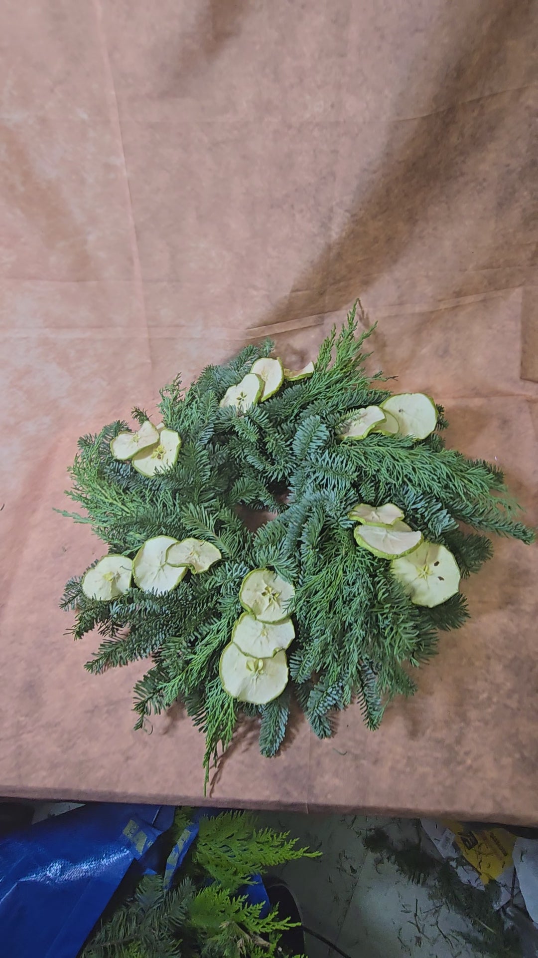 Handgewickelter Kranz für die Adventszeit mit frischer Tanne , etwas Eukalyptus und Apfelscheiben in hellgrün sieht einfach nur Klasse aus