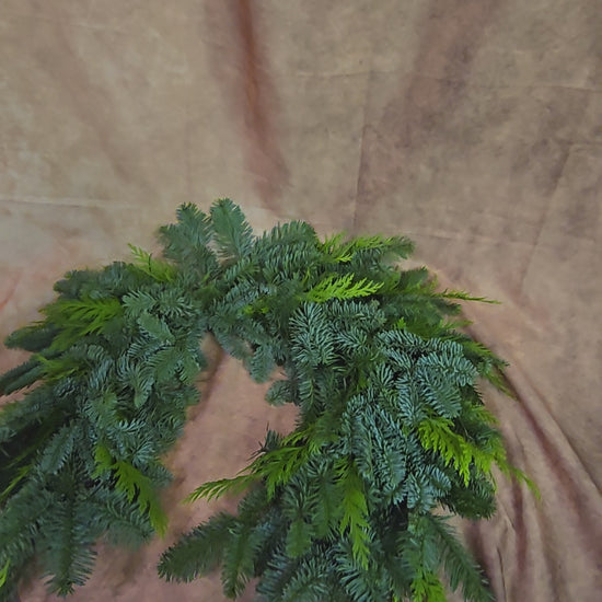 Handgewickelter Kranz für die Adventszeit mit frischer Tanne , etwas Eukalyptus , halbrund gearbeitet für ein schönes großes Gesteck