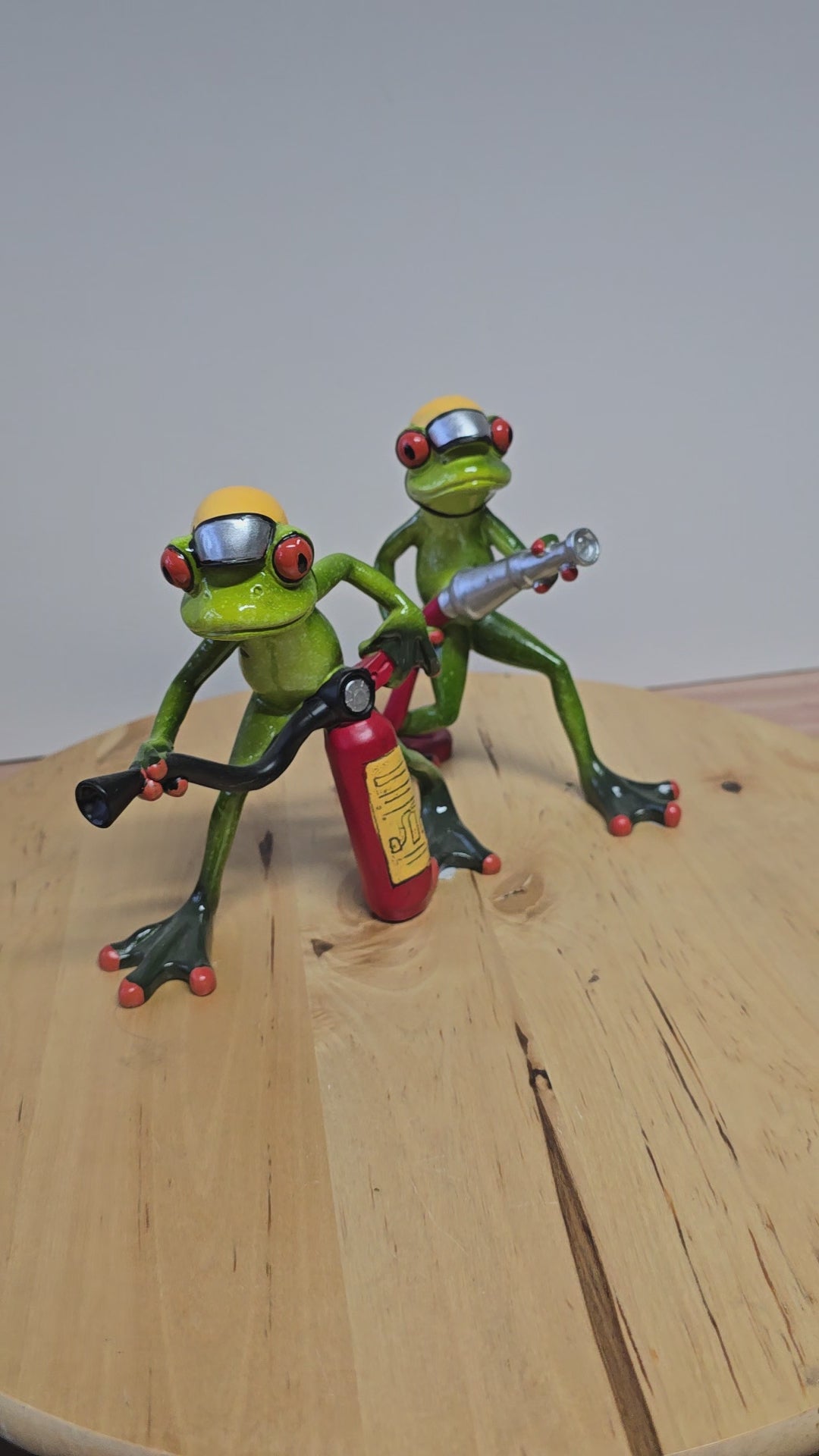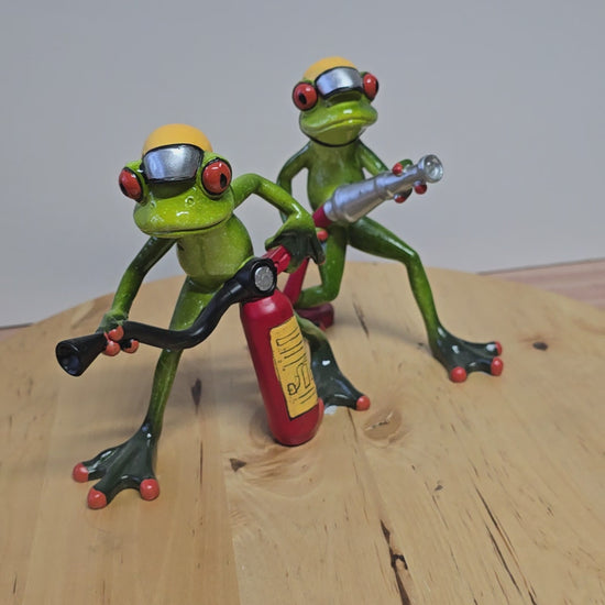 Frosch hellgrün als feuerwehrmann mit kunststein 2 fach sortiert 14 cm